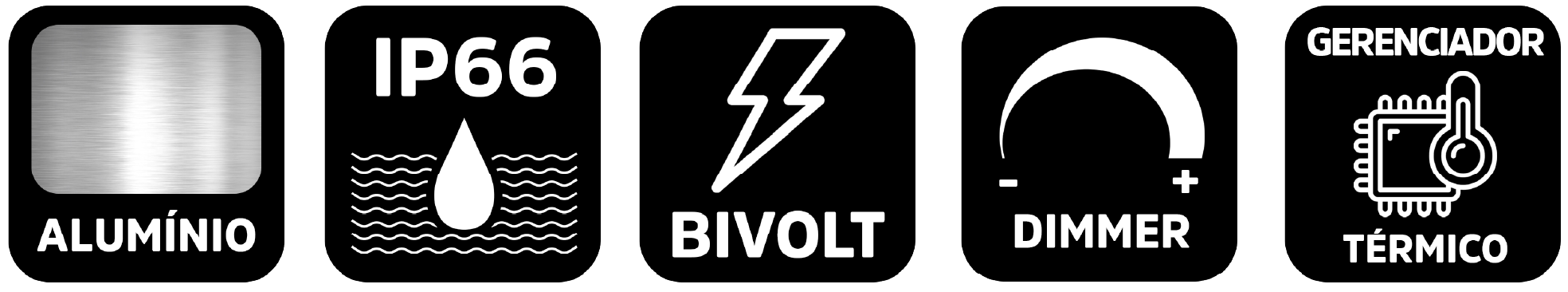Durabilidade superior Com o corpo moldado em uma única peça, a luminária se destaca pela resistência mecânica e pela vedação total contra intempéries.