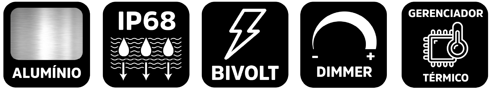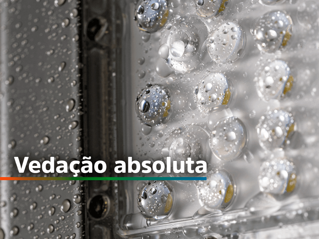 Vedação absoluta Com o grau de proteção IP68, esse refletor é desenvolvido para ambientes extremos, especialmente aqueles sujeitos à imersão em água ou exposição total à poeira.