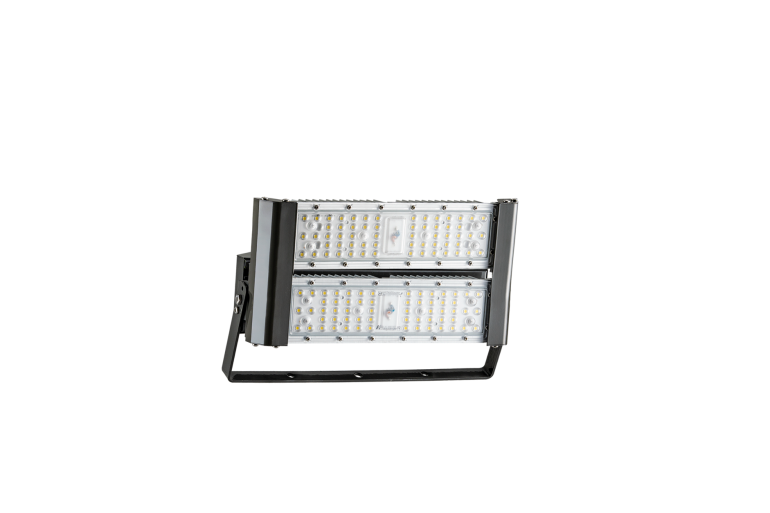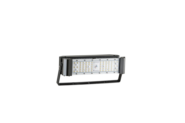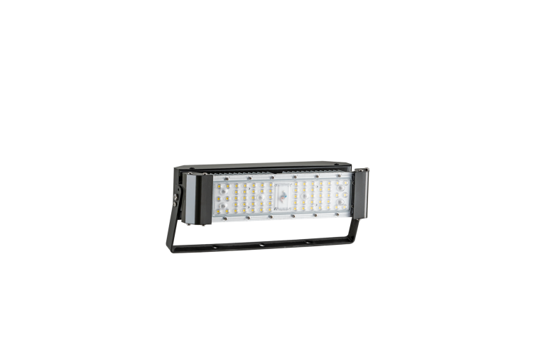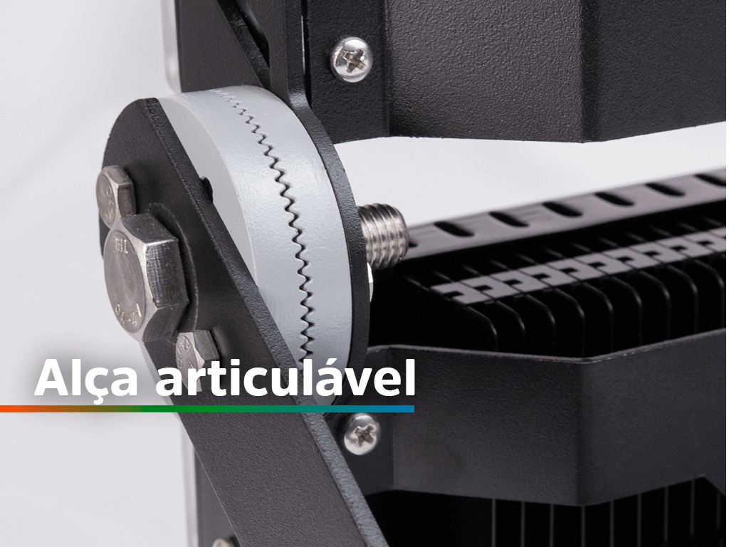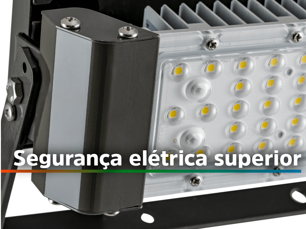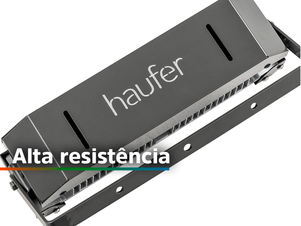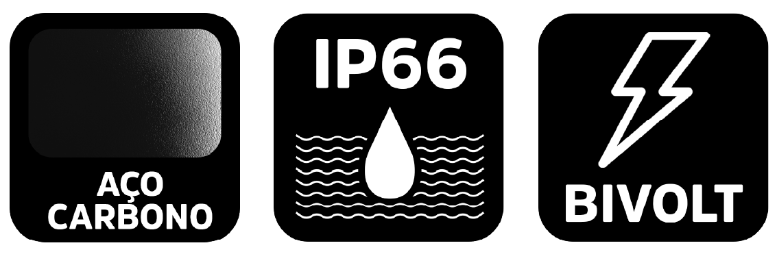 Alta resistência Com grau de proteção IP66, este refletor é construído para enfrentar condições ambientais severas, sendo totalmente vedado contra poeira e resistente a jatos potentes de água.
