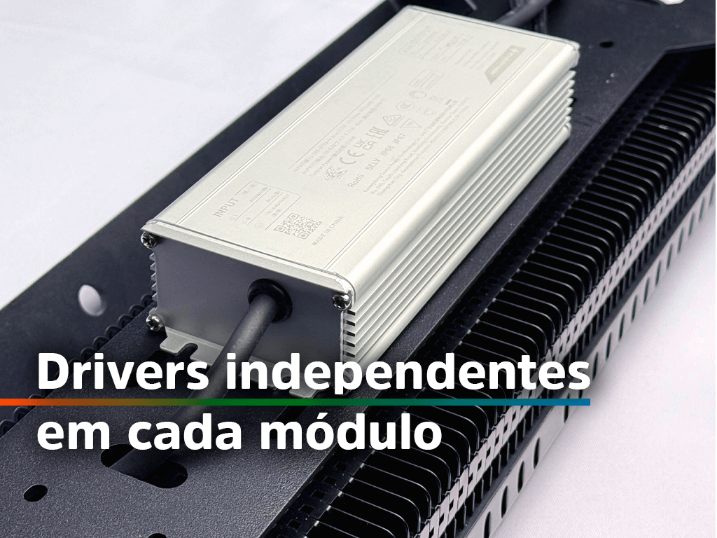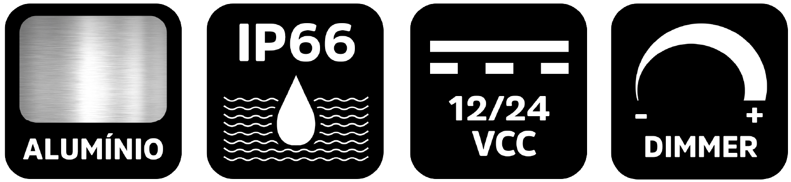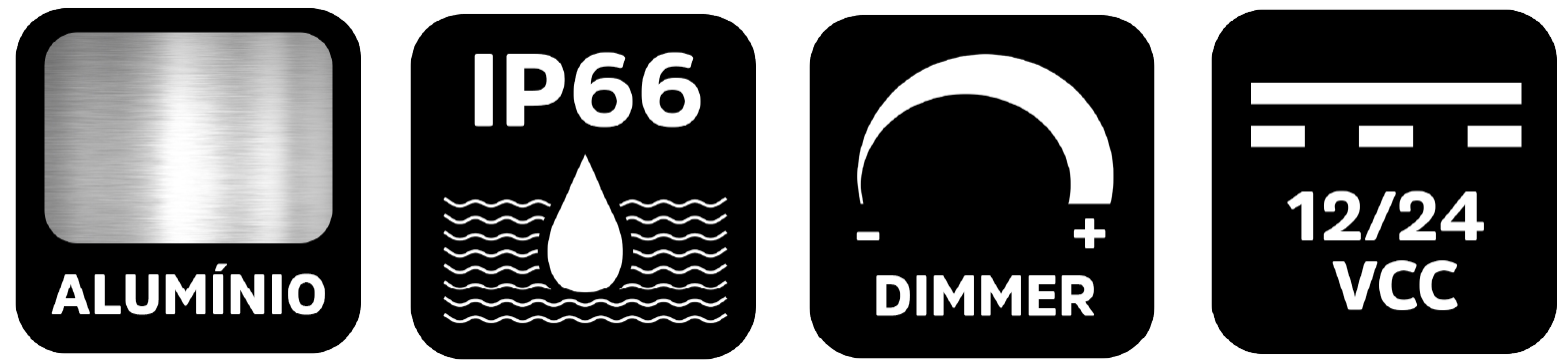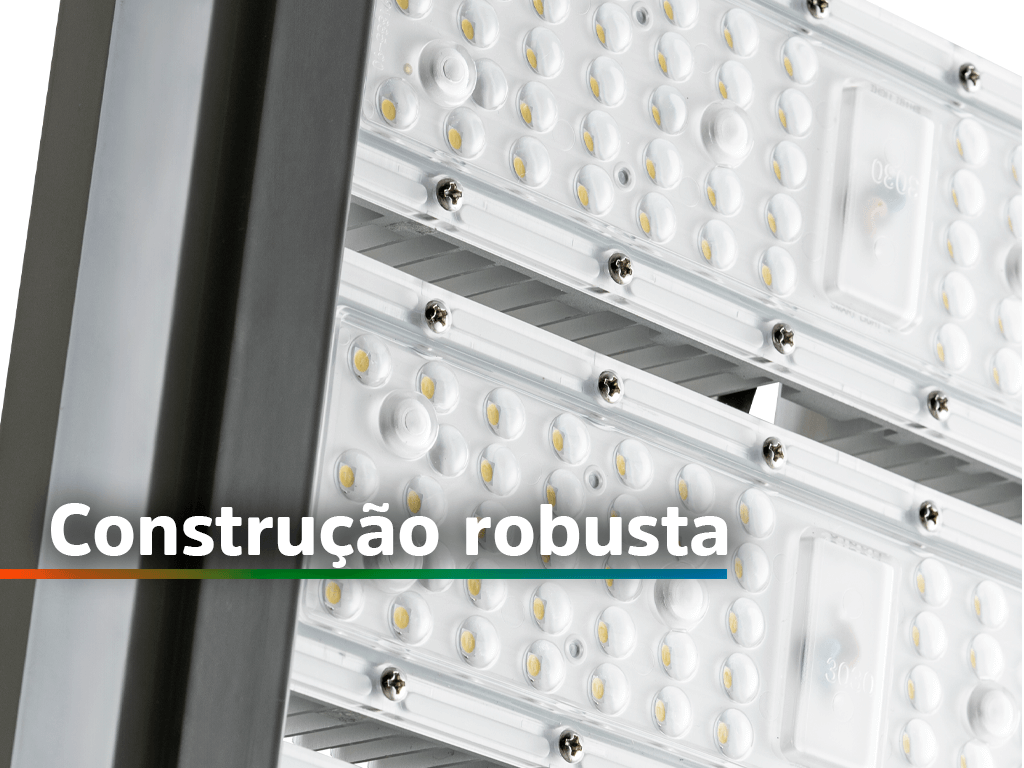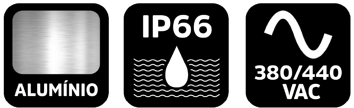 Construção robusta Projetada em alumínio, aço inox e materiais anticorrosivos, assegurando uma vida útil consideravelmente longa e custo de manutenção próximo de zero, mesmo em contato constante com umidade, corrosão e intempéries.