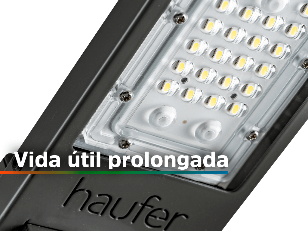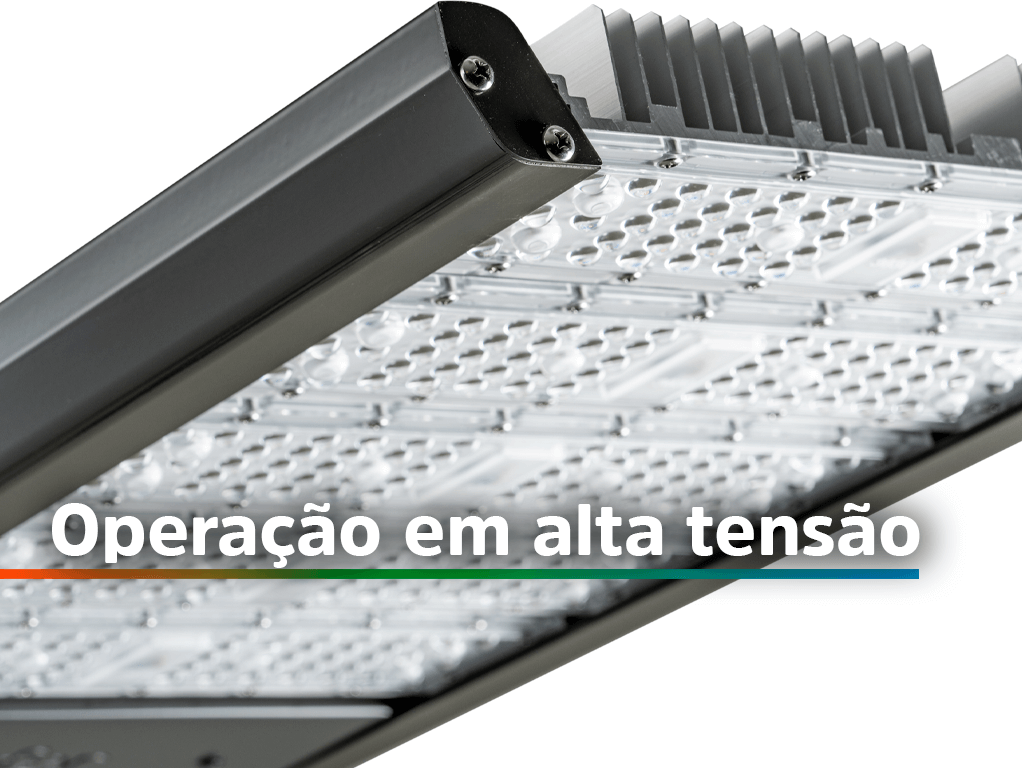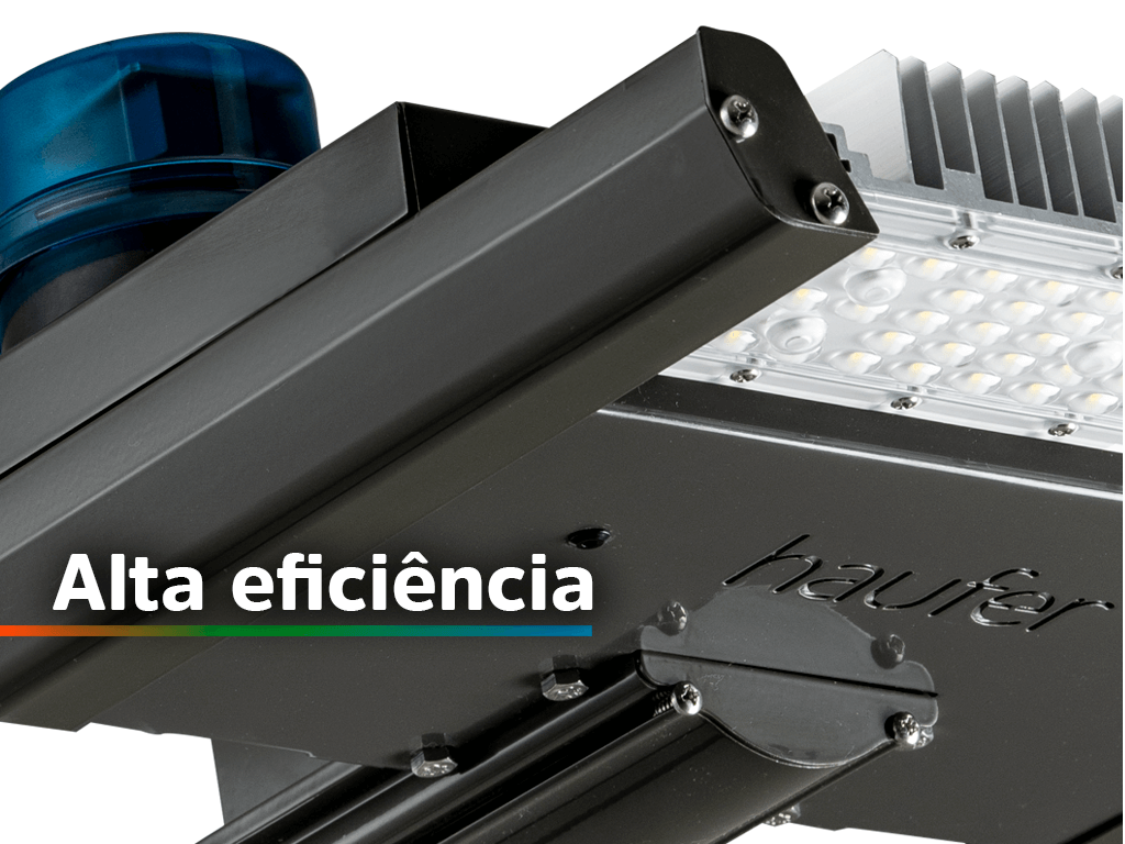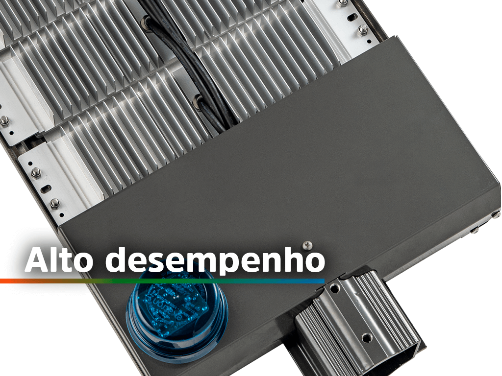 Iluminação de alto desempenho Garante uma iluminação potente e eficiente para vias públicas e áreas externas com condições ambientais adversas.