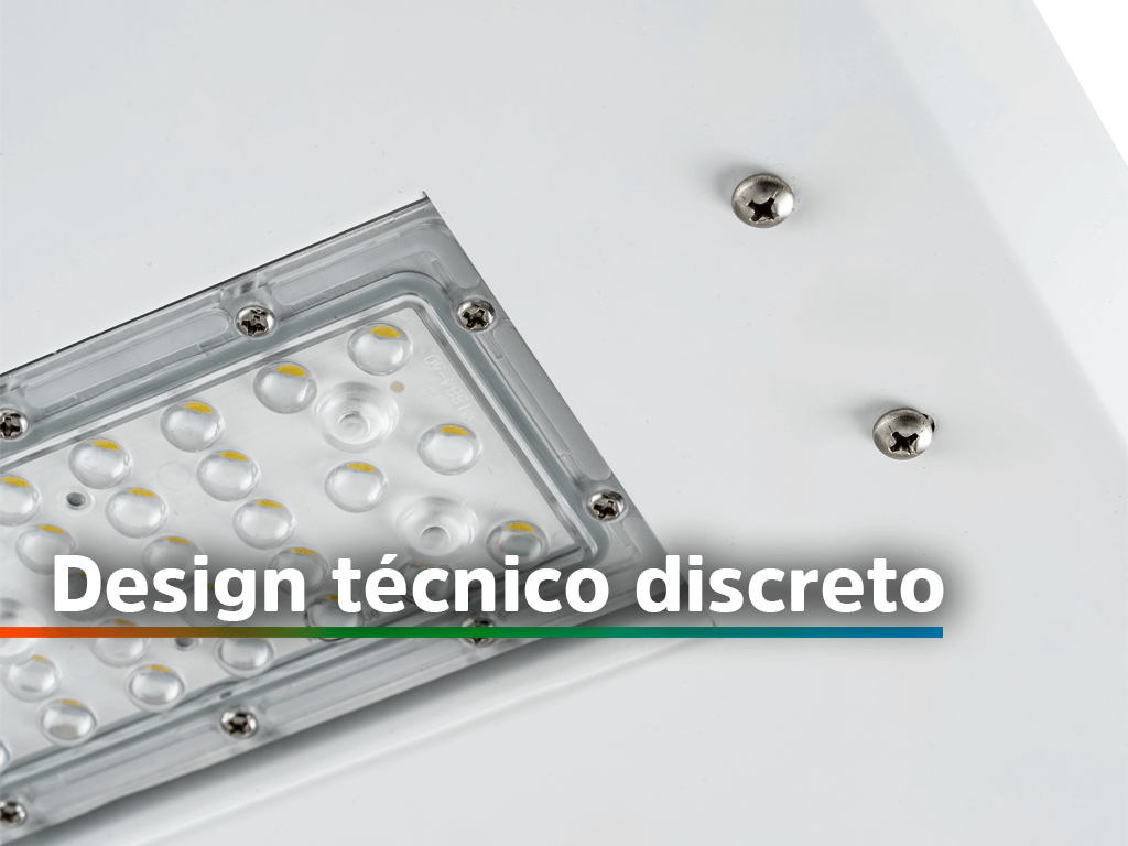 Compatibilidade com energia solar Projetada para funcionar em Corrente Contínua (DC), a luminária se conecta diretamente a sistemas fotovoltaicos, permitindo que se utilize a energia solar para alimentar sua iluminação.