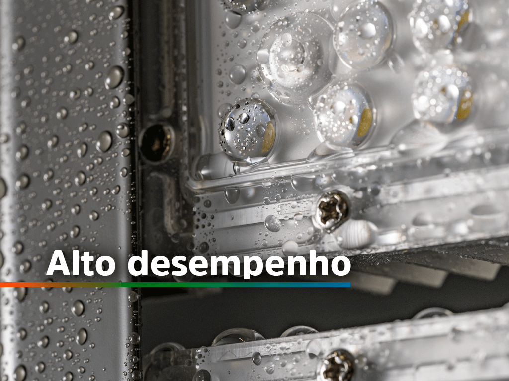 Iluminação poderosa e precisa Oferece altos níveis de luz com uniformidade, alcance e precisão, maximizando a visibilidade em grandes áreas.